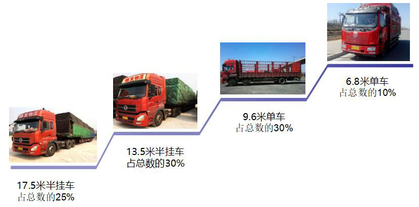 公司目前车辆1200多台,其中17.5米半挂车300余台,13.5米半挂车200余台;9.6米和6.8米单车共500余台,商超30余台。